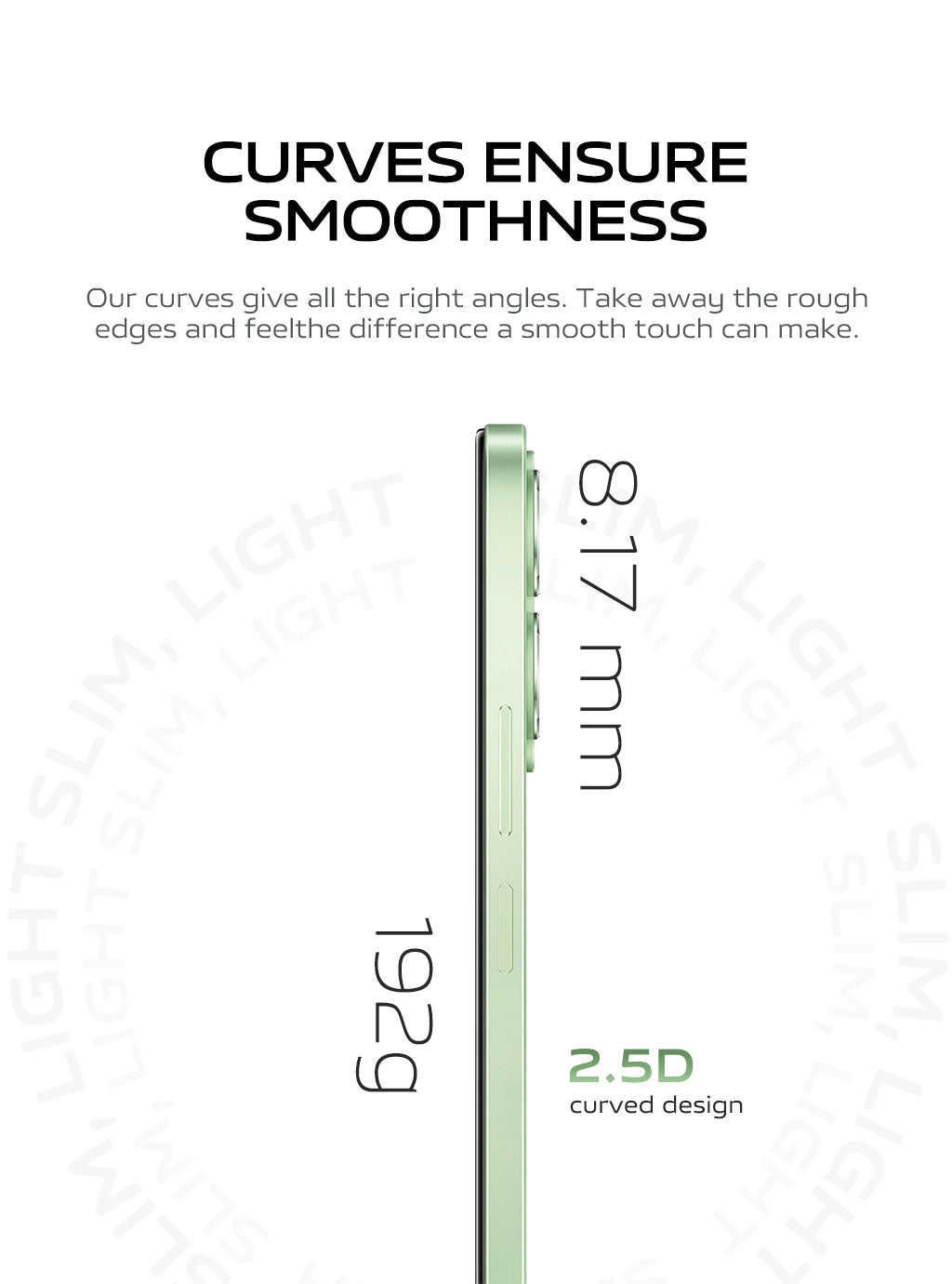 50MP Sony Ultra-Wide Angle SONY IMX882 Camera | Portrait System with Aura Light 3.0 | 5500mAh All-Day Battery with 44W Fast Charging | 4nm Qualcomm Snapdragon 6 Gen 1 5G Chipset | 120HZAMOLED Display 3D Curved Design | 16GB RAM 256GB ROM + 8GB Extended RAM + up to 1TB ROM Expandability | IP64 Dust & Water Resistance | Android 14 OS