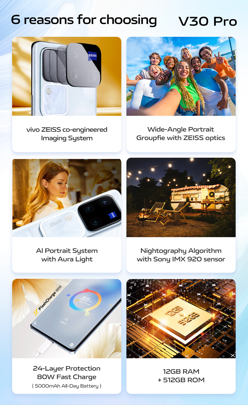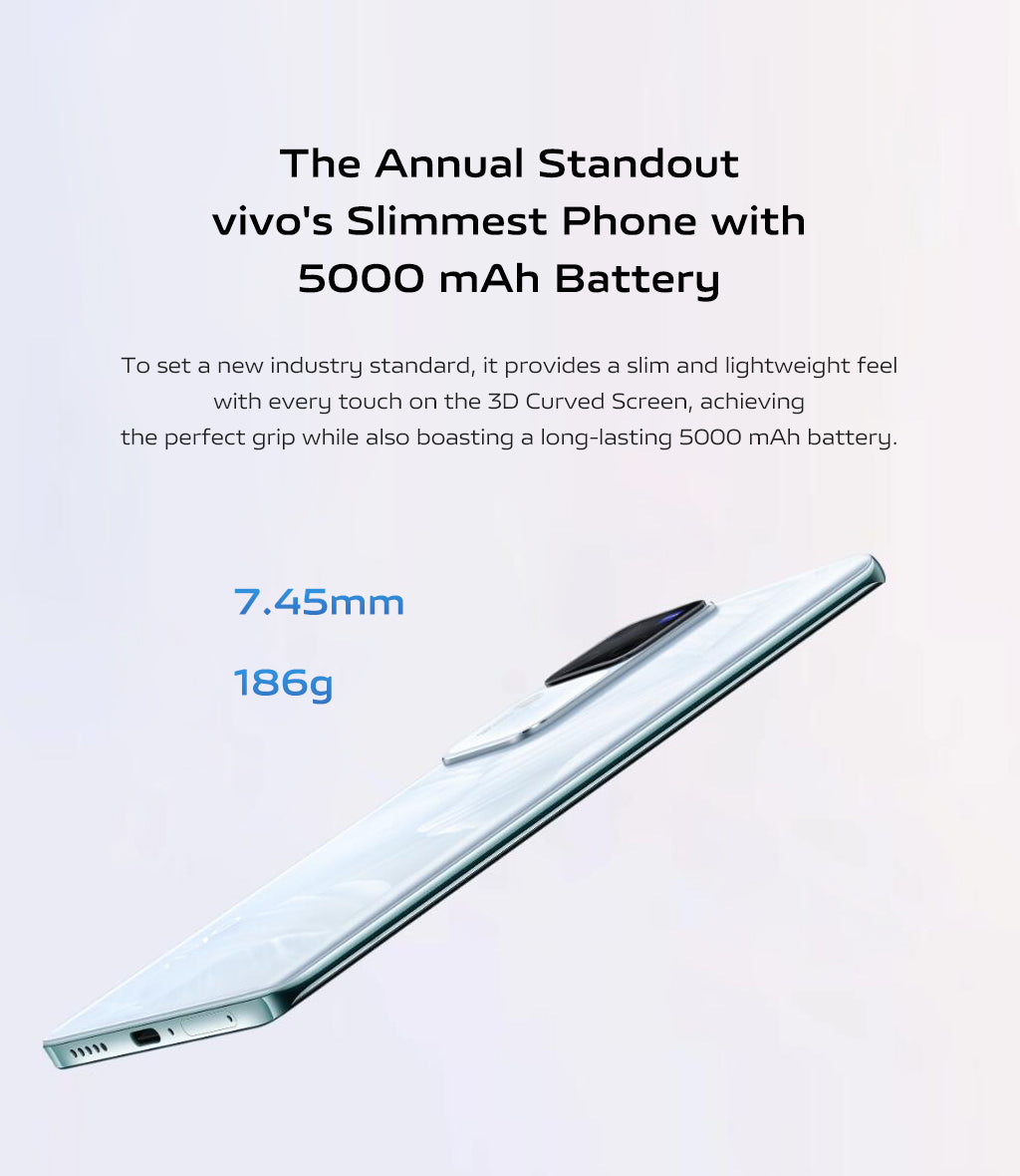 vivo ZEISS Co-engineered Imaging System | Wide-Angle Portrait Groufie with ZEISS Optics | Portralt System with Aura Light | Nightography with Sony IMX 920 Sensor | 24-Layer Protection | 8OW Fast Charge | 5000mAh All-Day Battery|12GB RAM + 512GB ROM | 7.45mm Slim Design 3D Curved Screen 120Hz Refresh Rate | OIS+EIS Dual Stabilization